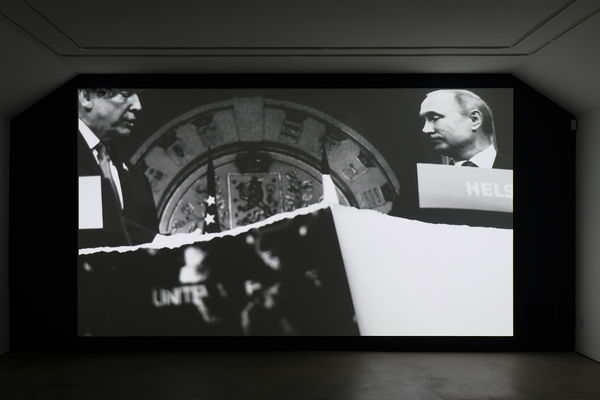 In the black-and-white film, Icarus Rising (2019), the action of Longo tearing up photographs culled from the recent mainstream media is slowed down and amplified, creating an immersive experience. The video's imposing scale, sound and speed force the viewer to fully consume and consider images that have been dominating the contemporary American news cycle.