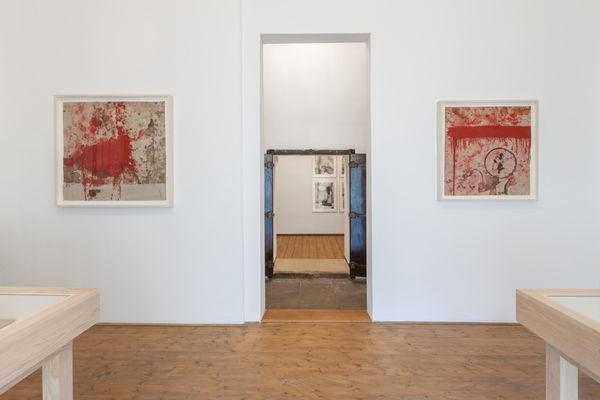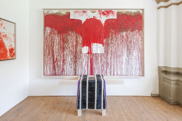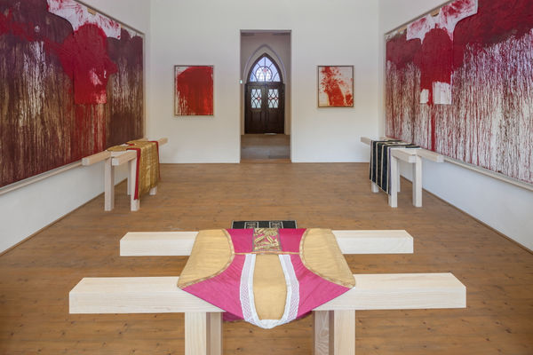 A principle founder of Viennese Actionism, Hermann Nitsch's practice synthesizes performance, painting, sculpture and music. Centered on a total approach to art making that appeals to all senses ("Gesamtkunstwerk"), Nitsch began developing his Orgien Mysterien Theater (Theatre of Orgies and Mysteries)in 1957. Dionysian performances, which can be both gruesome and celebratory, include elaborate sacrificial rituals, painting actions, and large communal feasts set to the soundtrack of Nitsch's originally composed scores. This site-specific exhibition realized by the artist features approximately 50 works dating from the mid-1960s, including large-scale installations, paintings, sculpture, works on paper, photographs, film and sheet music.